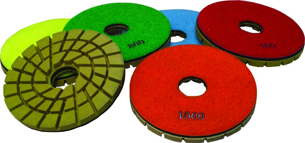 Están elaborados con polvo de diamante de alta calidad, impregnados en una matriz de resina. Constan de almohadillas de pulido con distintos granos para satisfacer requerimientos diferentes. Ofrecen una fuerte fuerza de pulido, pero no rayan el piso, ni dejan color en la piedra después del pulido. El proceso de pulido es rápido y pueden usarse varias veces.